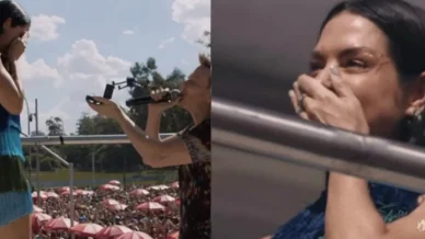 O cantor então segurou a mão da apresentador e começou a cantar: “Quer casar comigo de novo? Eu não consigo ser feliz sem você, a gente junto é tão perfeito, eu amo nosso jeito. Casa comigo de novo”, era o trecho da música de Michel. De joelhos ele pediu a mão da esposa com nova aliança, ela muito emocionada aceitou.