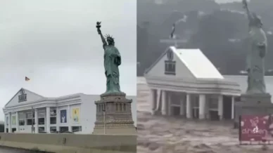 Os registros compartilhados nas redes sociais exibem com clareza que o nível da água chega próximo ao telhado da loja, o mesmo ocorre com os imóveis da redondeza.