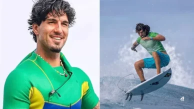 O surfista Gabriel Medina mandou um recado pro compatriota João Chianca, o “Chumbinho”, depois de eliminar ele da Olimpíada de Paris 2024. Foi nessa quinta-feira (1), depois da prova. Medina falou pro amigo e lamentou a chave da competição. Com a vitória, Gabriel Medina se classificou pras semifinais dos Jogos.