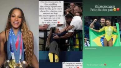 A grande atleta brasileira, ginasta campeã olímpica no Solo em Paris, Rebeca Andrade, de 25 anos, repercutiu nas redes sociais neste domingo, 11, para dedicar então uma homenagem à sua mãe, dona Rosa, que é mãe de oito filhos, contando com a ginasta, e que compareceu em Paris para acompanhar os jogos olímpicos. Rebeca na ocasião postou a foto abraçando sua mãe, logo depois de conquistar o ouro olímpico em Paris.