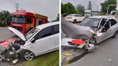 Segundo a Polícia Militar, o casal estava em um carro, um Chevrolet Celta, quando bateu de frente com um Chevrolet Onix na Rodovia Jorge Lacerda. A mulher que estava dirigindo o Celta foi a mais afetada, ficando com ferimentos graves e ficando inconsciente no local. A equipe de resgate teve que fazer todo o procedimento de intubação no local mesmo, antes de levar ela para o hospital da cidade. O rapaz que estava com ela no carro também teve sérios problemas, com uma fratura exposta no tornozelo, e foi socorrido junto.