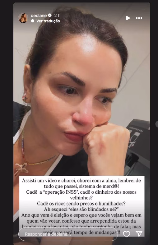 Nos vídeos, ela também cobrou uma resposta do governo em relação ao recente escândalo envolvendo o Instituto Nacional do Seguro Social (INSS), que virou notícia em todo o país. “Cadê o dinheiro dos nossos velhinhos?”, disparou, visivelmente irritada. A frase viralizou rapidamente nas redes, com muita gente compartilhando e comentando o desabafo.