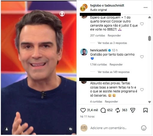 Já na madrugada desta quinta, Henri Castelli resolveu se manifestar. Em uma publicação simples, sem produção exagerada, o ator agradeceu o carinho do público, tranquilizou os fãs e deixou claro que está sendo bem acompanhado. Mesmo sem entrar em muitos detalhes, deu para sentir um tom de gratidão e, ao mesmo tempo, frustração por ter deixado o programa tão cedo.
